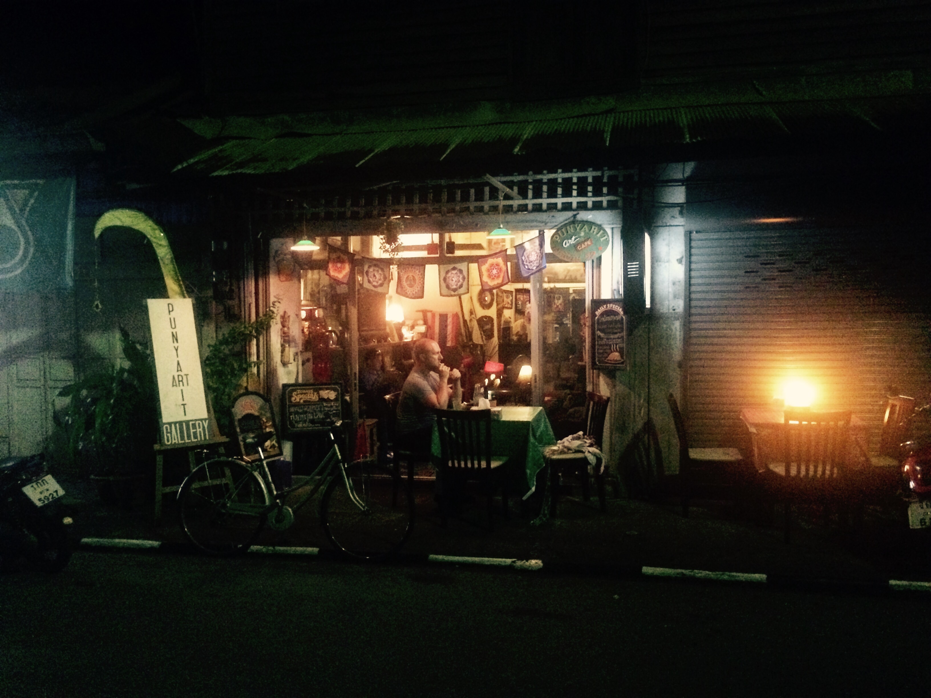 Zu empfehlendes Restaurant: Punyarit Art Café (https://www.facebook.com/pages/Punyarit-Art-Cafe/193703134047102) inklusive zweier Bier für mich (endlich!!!). Gegessen und gelebt wird in den gleichen vier Wänden, wie gehabt. Die Toilette ist also Teil der Küche und kein separat verschlossener Raum. Lediglich ein Plasteverkleidung konnte Toilette, Dusche und Zahnbürste verbergen. Die Spülung der Toilette musste wie so häufig in den vergangenen Tagen, durch einen selbst betätigt werden: man nehme eine Kelle aus dem Wasserbottich neben dem Klosette und schütte es im Anschluss an den Toilettengang das Rohr hinunter – viel praktischer als in Deutschland. Fabian war der Akt der Spülung zu unhygienisch, ich vollzog ihn aus Respekt der Menschen vor Ort trotzdem.