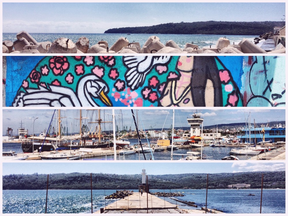 Ein sonniger und ruhiger Tag am schwarzer Meer neigt sich dem Ende zu. Der Himmel färbt sich rot und ich höre Vögel und ein Motorrad in der Ferne. Varna ist eine wahrhaft schöne Stadt. Die bulgarischen Menschen sind herzlich und glauben an das große Europa. Hier in der kleinen Stadt mit acht verschiedenen Hochschulen gibt es den zweitgrößten Hafen Bulgariens. Zu Zeiten der Sowjetischen Großmacht hieß die Stadt Stalin. Ganz früher fungierte sie als Kolonie der Griechen. Heute gibt es ein kleines prachtvolles touristik-umwölbtes Stadt-Zentrum, mehrere Museen und die größte Kathedrale Bulgariens. Da ich kein Tuch zum Verhüllen bei mir hatte und überdies ein kleine Hochzeit den Dom für sich beanspruchte, schauten wir uns das Kirchenwerk vor allem von außen an. Varna birgt den zweitgrößten Hafen Bulgariens. In diesen Tagen birgt die Stadt ein größeres Rigattafestival, das uns weg von den Menschen hat Richtung Leuchtturm treiben lassen. Dort lagen wir in der Sonne. Zwei Stunden lang. Es war toll. Und vor allem – ich hatte Zeit für mich. Ich beobachtete das Atmen des Meeres. Immer dann wenn die Wellen aufstiegen und am Steinufer – das mich den ganzen Tag an Prora auf Rügen erinnerte – brachen: immer dann atmete das Meer aus. Und jeweils dann, wenn es sich beruhigte und das Wasser die Wellen wieder in sich aufsaugt, atmete es ein. Überschwemmungen sind wohl sowas wie ein Signal dafür, dass die Natur nicht alles mit sich machen lässt. Eine beruhigende Wirkung hatte es auf mich, dieses Schwarze Meer. Ich hätte mich darin verlieren können. Erst das Baden in den Wellen mehrere Stunden später an irgendeinem kleinen Strand am Standtrand befreite mich von meiner Trance. Ich sende alles Gute in das große glückliche Deutschland und beginne jetzt mit dem Kochen….
